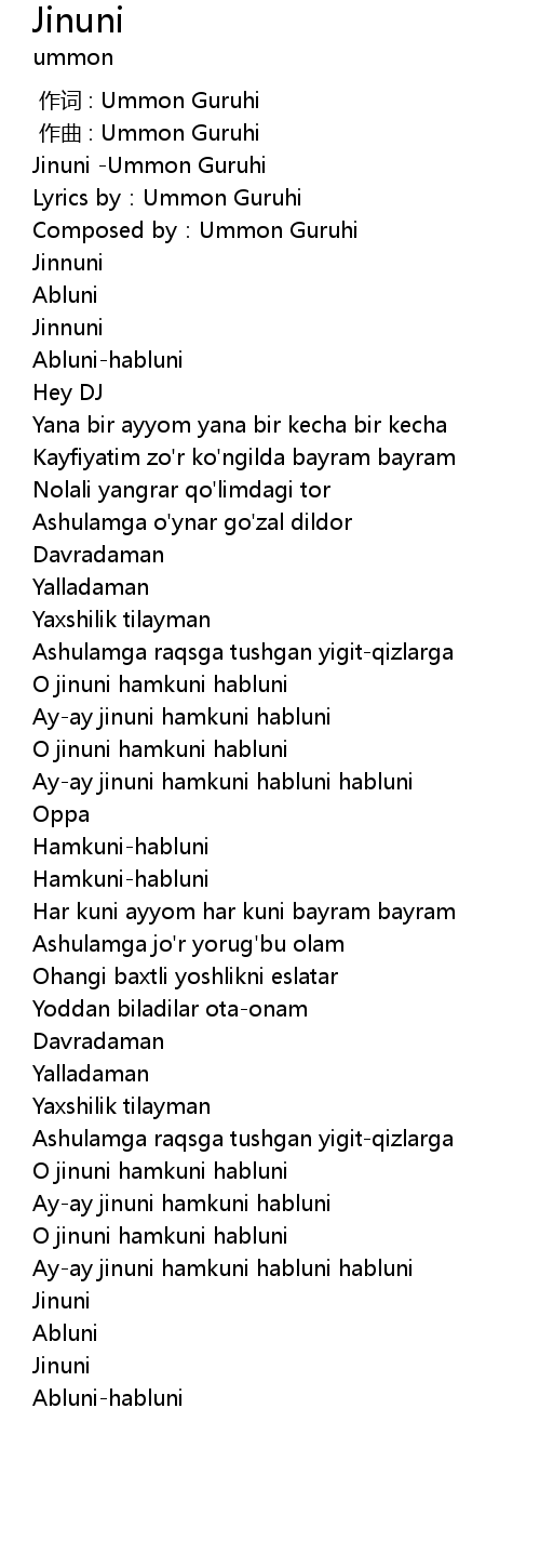 | [00:00.00] | Jinuni -Ummon Guruhi |