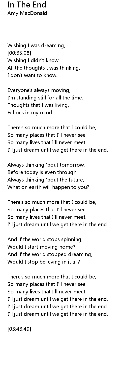 I'll just dream until we get there in the end. |
