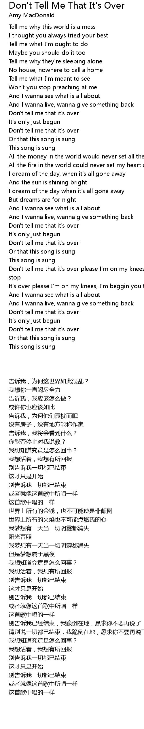 Don't tell me that it's over please I'm on my knees, I'm beggin you to stop |