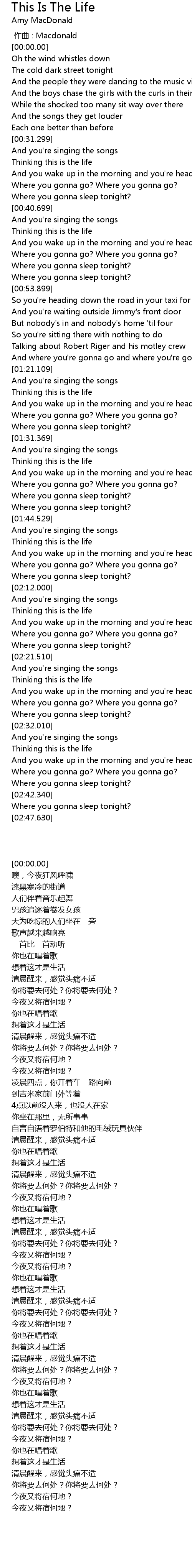 | [01:17.719] | And where you' re gonna go and where you' re gonna sleep tonight |