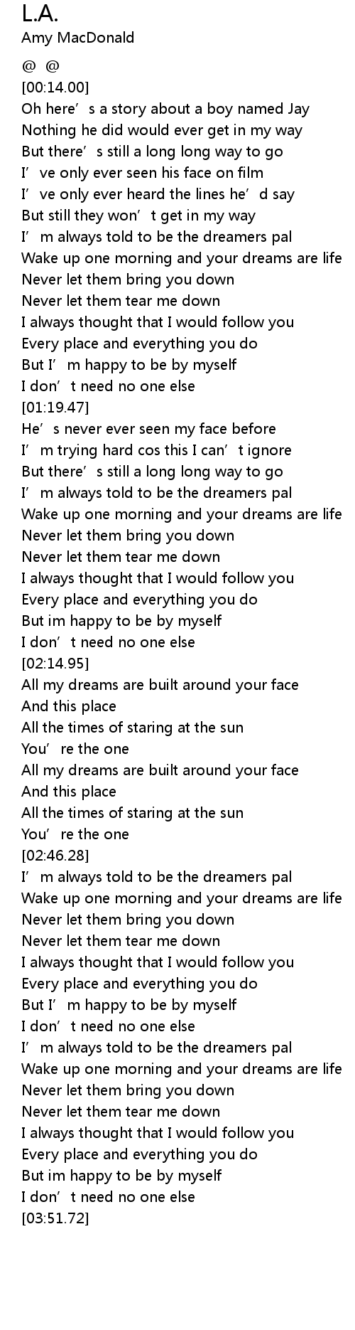 | [03:18.70] | I’m always told to be the dreamers pal |