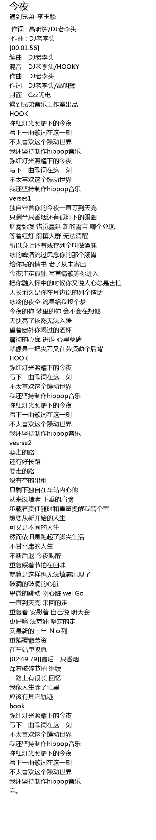 | [00:04.52] | 混音:DJ老李头/HOOKY |