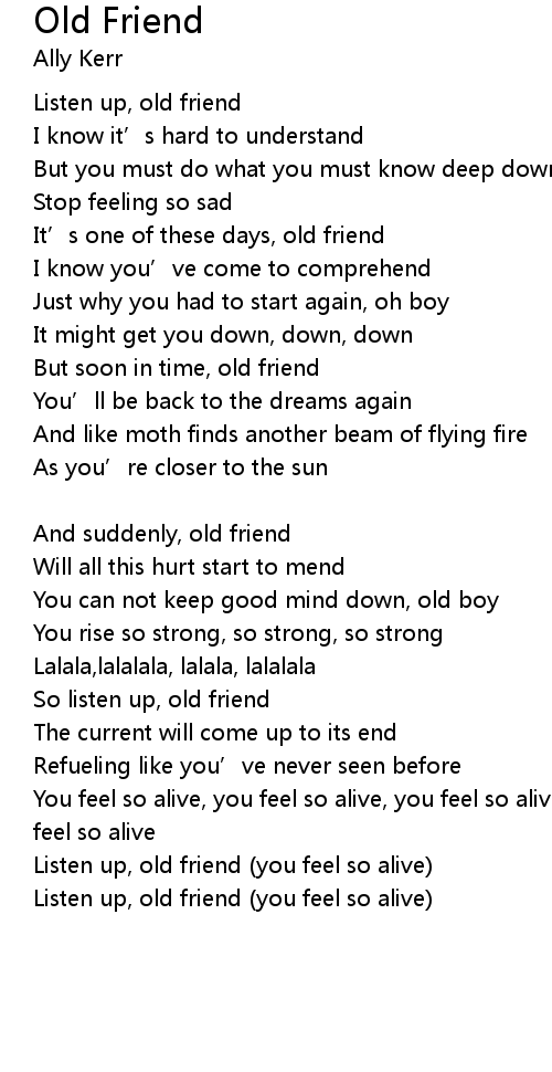 | Listen up, old friend you feel so alive |