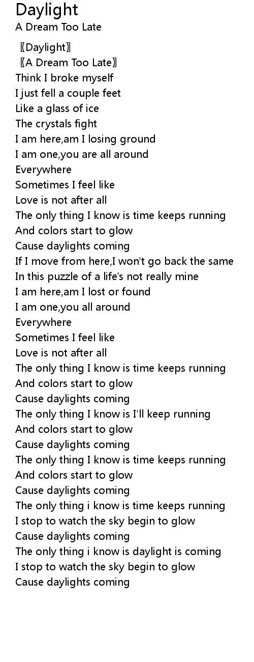 | [03:13.00] | The only thing i know is daylight is coming |