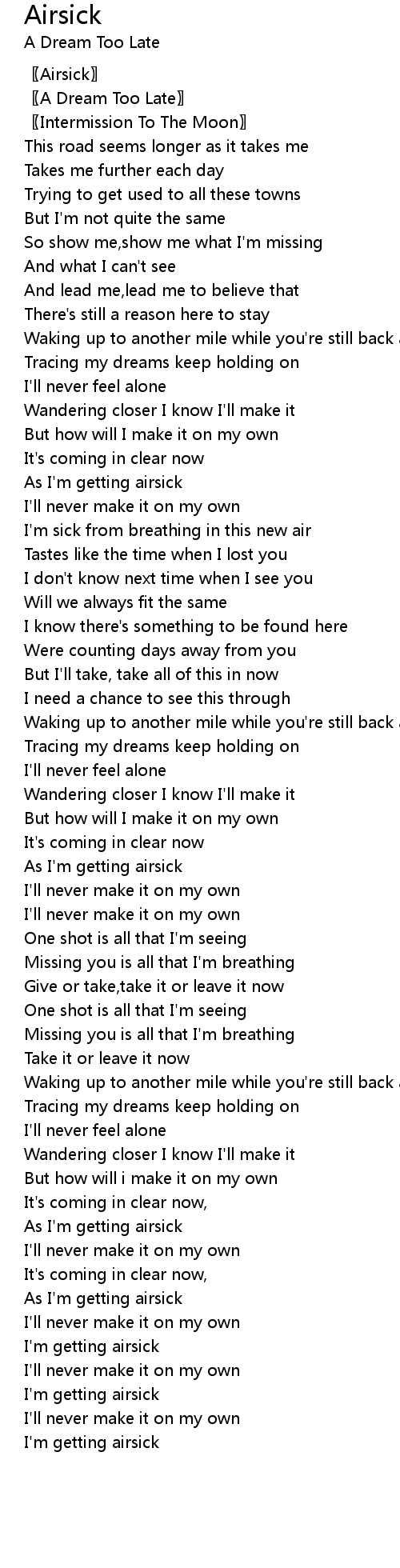 | [00:05.00] | 〖A Dream Too Late〗 |
