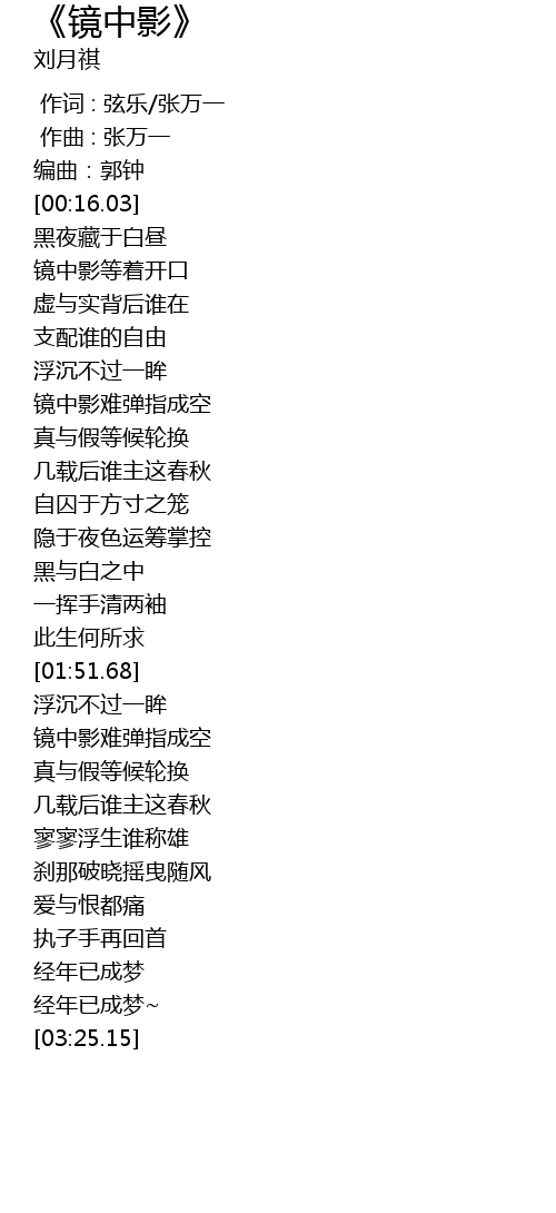| [00:00.000] | 作词 : 弦乐/张万一 |