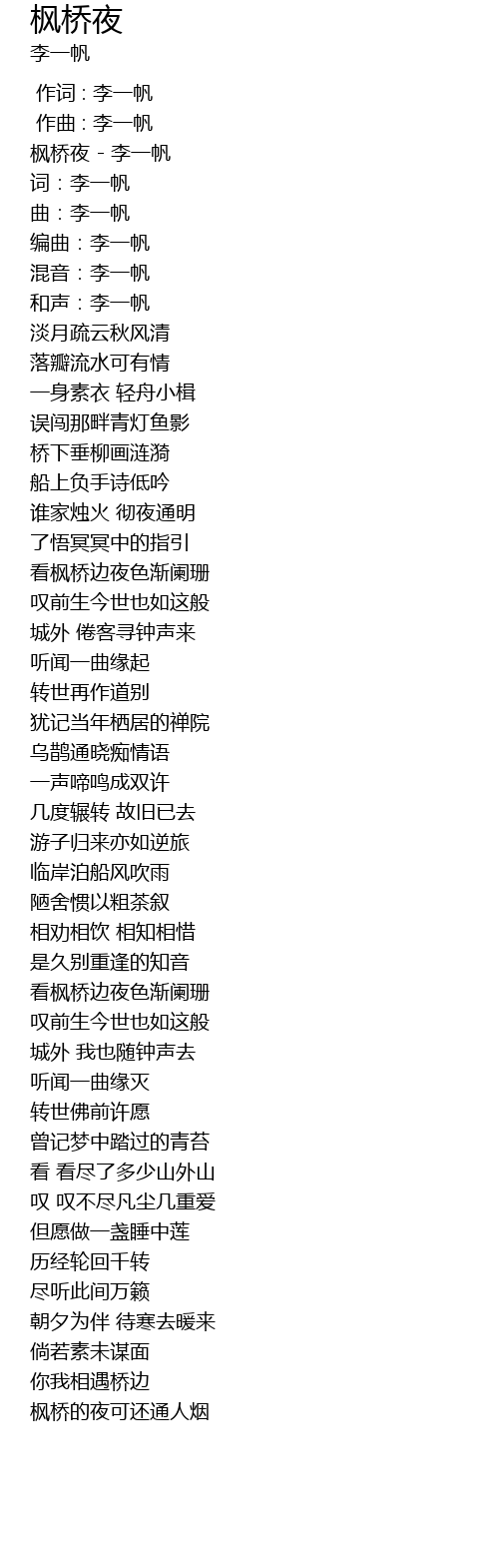 | [00:02.115] | 枫桥夜 - 李一帆 |