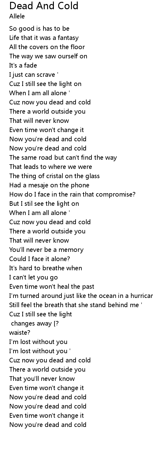 Now you're dead and cold |