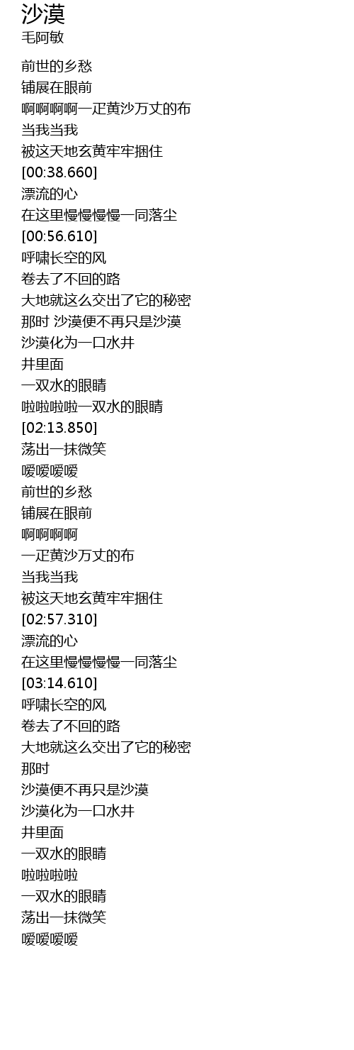 | [01:31.810] | nà shí shā mò biàn bù zài zhǐ shì shā mò |