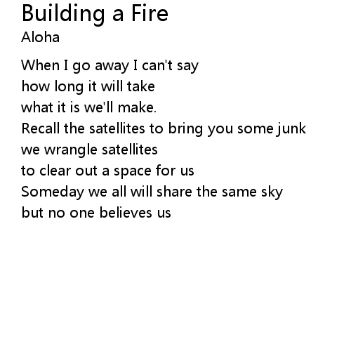 | Song | Building a Fire |