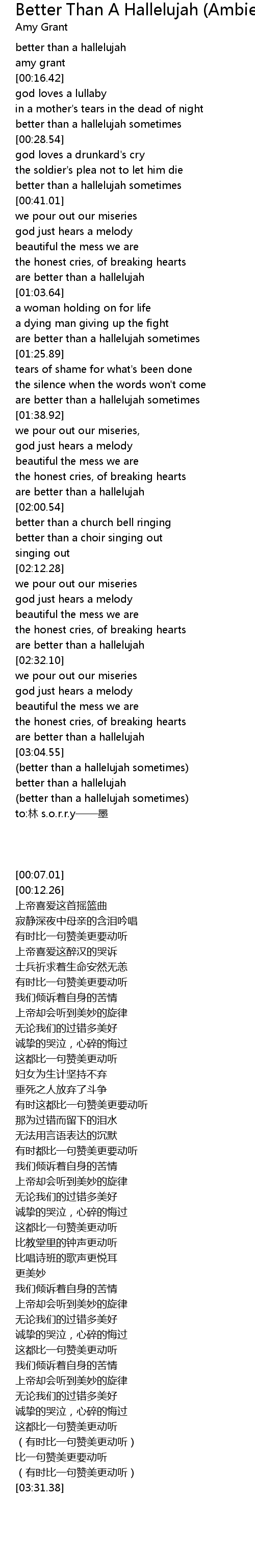 | [03:24.38] | (better than a hallelujah sometimes) |