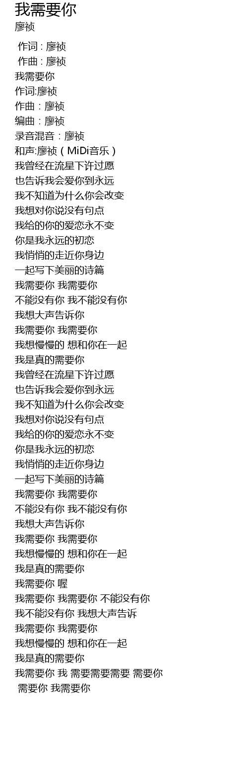 | [03:38.30] | 我需要你 我 需要需要需要 需要你 |