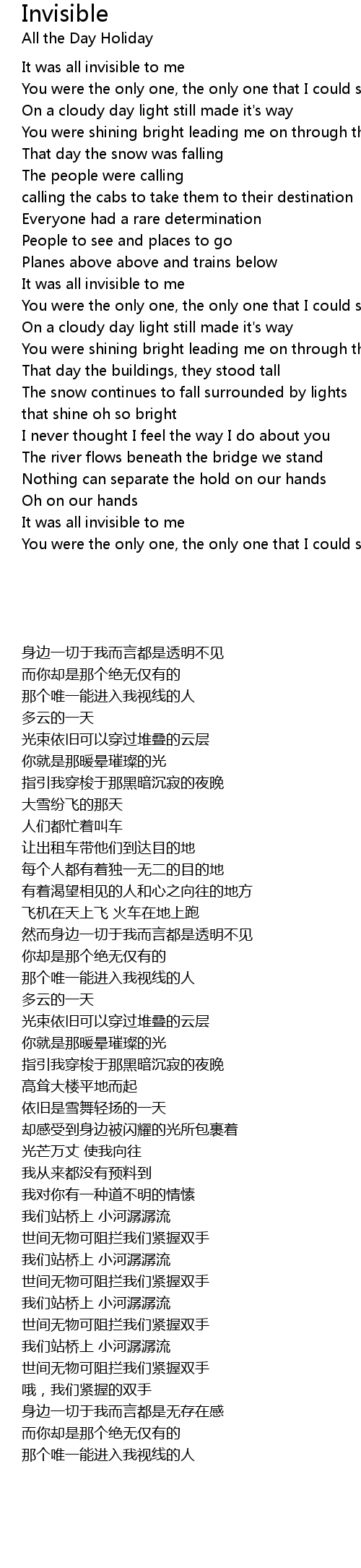 You were the only one, the only one that I could see |