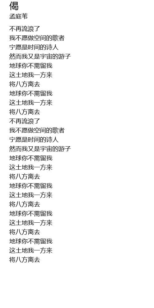 | [01:50.60] | 我不愿做空间的歌者 |