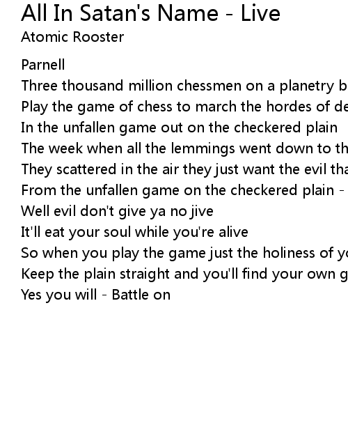 From the unfallen game on the checkered plain - All in satan's name |