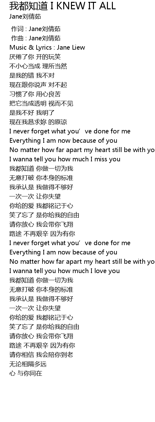 | [00:11.723] | Music & Lyrics : Jane Liew |