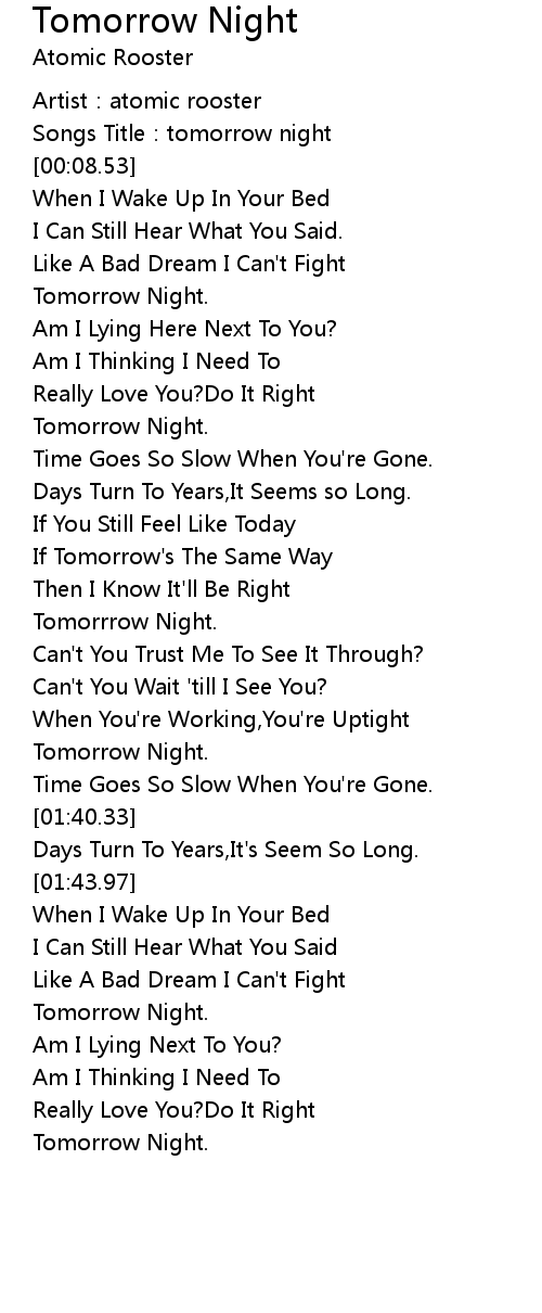 | [00:31.45] | Tomorrow Night. |