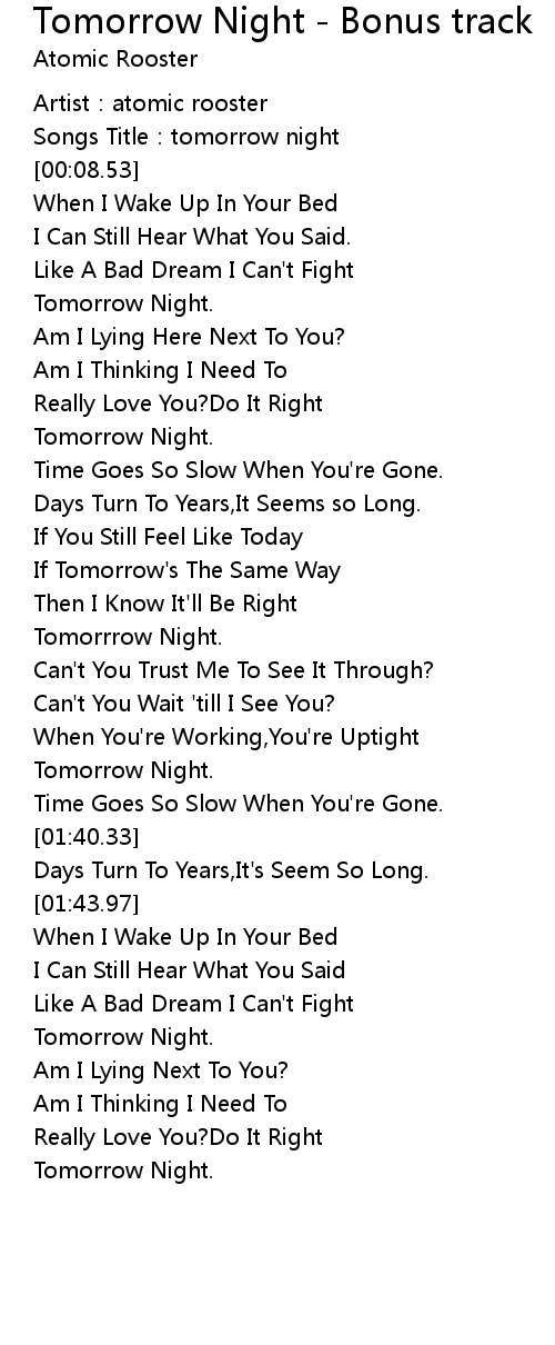 | [00:44.71] | Tomorrow Night. |