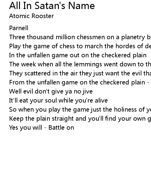 From the unfallen game on the checkered plain - All in satan's name |