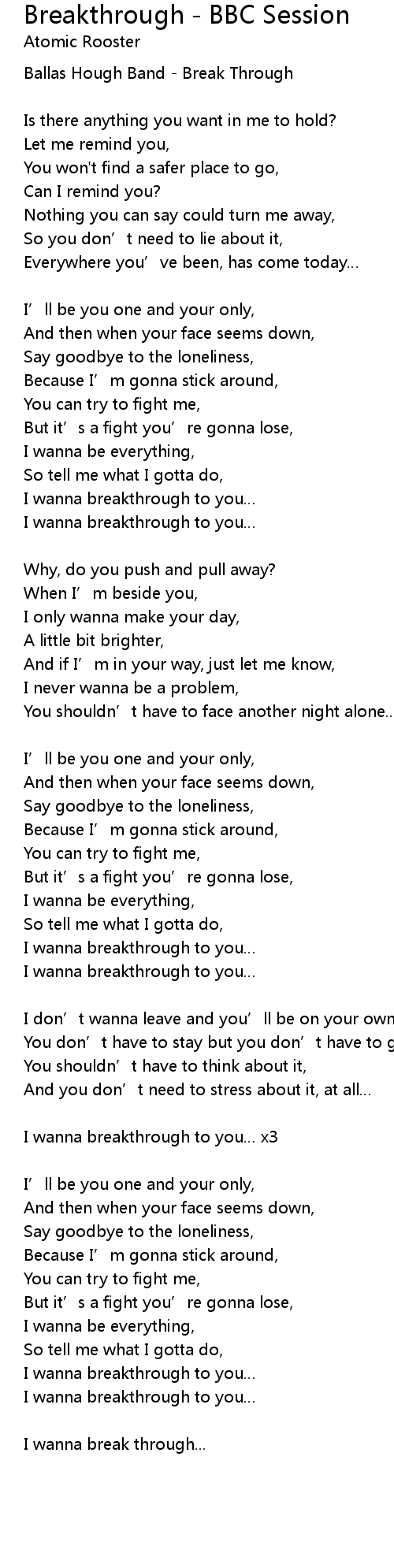 | I wanna breakthrough to you x3 | |