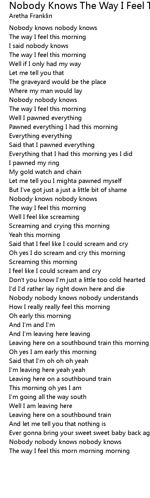 Nobody nobody knows nobody understands |