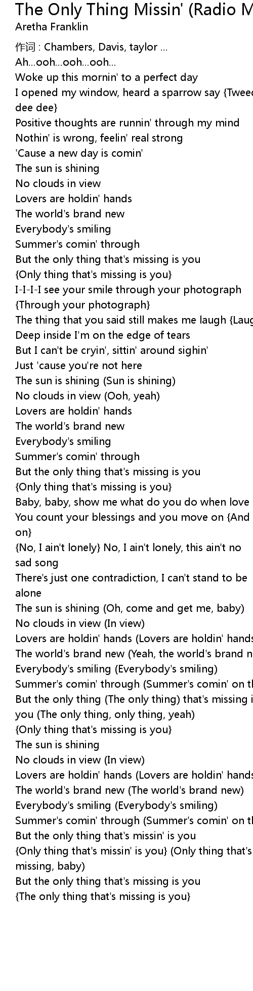 | But the only thing that' s missin' is you | |