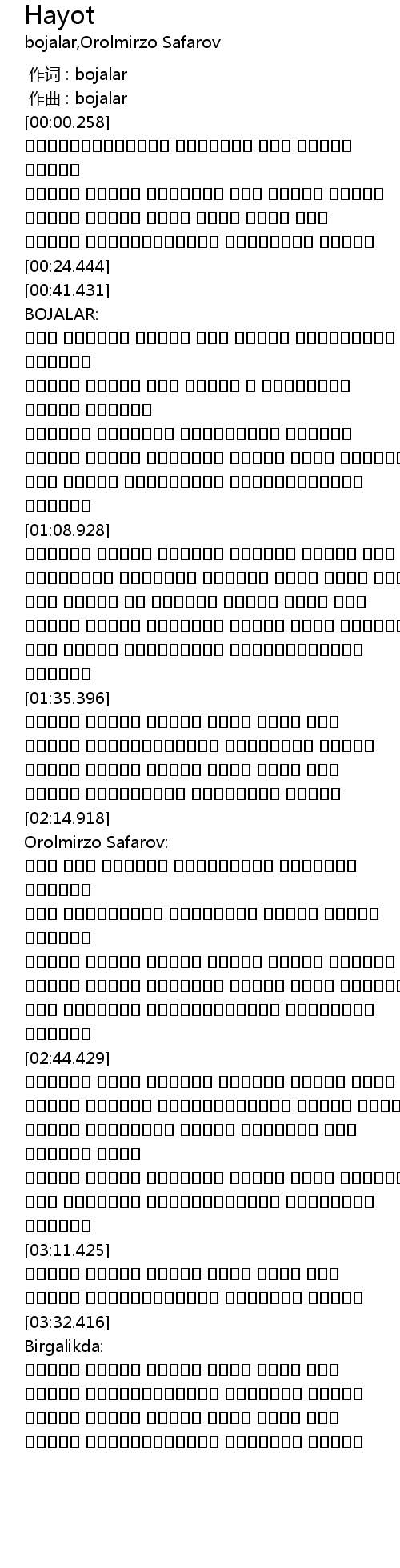作词 : bojalar |