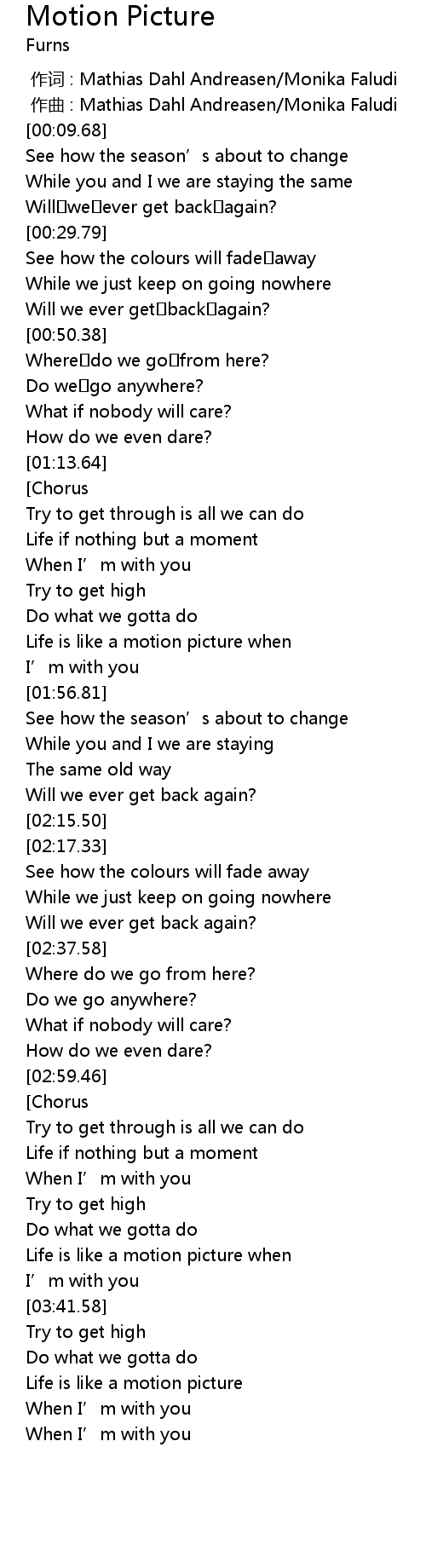 | [03:33.63] | Life is like a motion picture when |