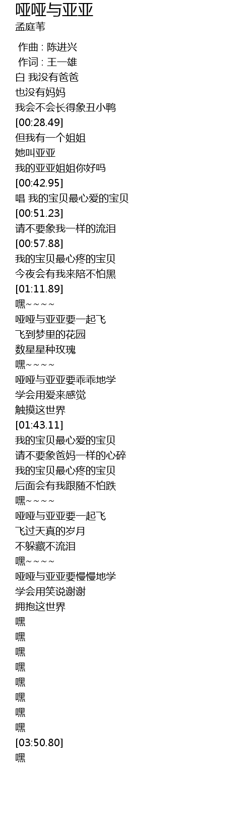| [01:17.05] | 哑哑与亚亚要一起飞 |