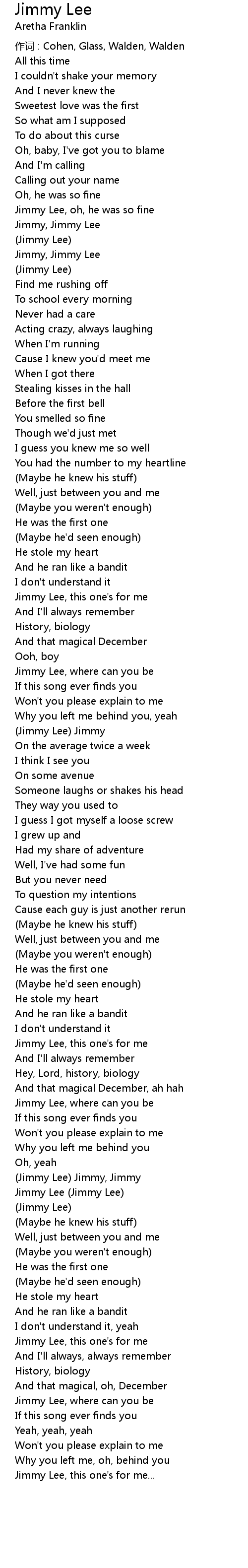 | 作词 : Cohen, Glass, Walden, Walden | |
