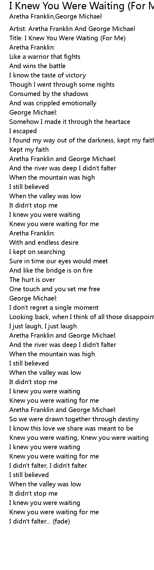 I Knew You Were Waiting (For Me) Lyrics