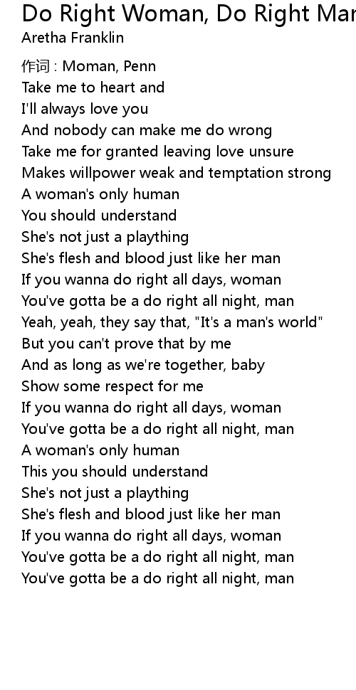 | If you wanna do right all days, woman | |