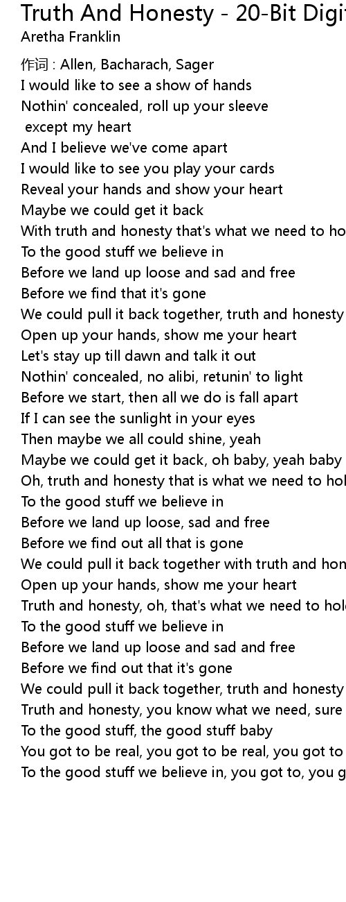 | Truth and honesty, oh, that' s what we need to hold on | |