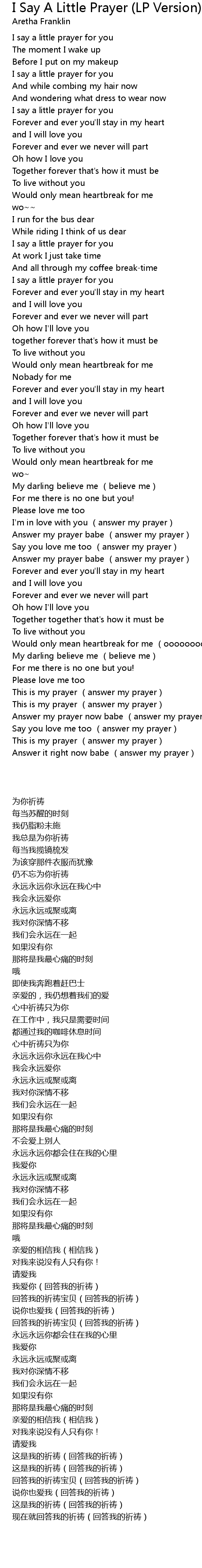 | [02:26.56] | Answer my prayer babe answer my prayer |