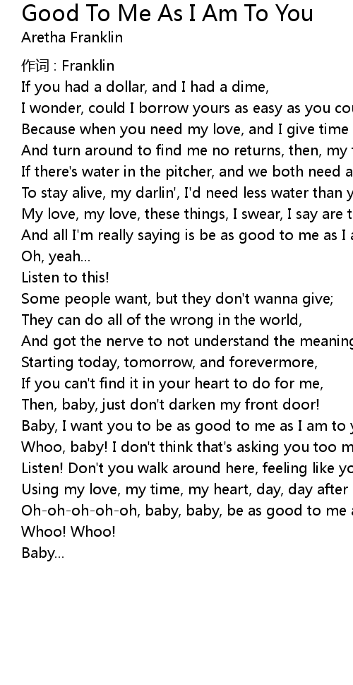 | Baby, I want you to be as good to me as I am to you | |