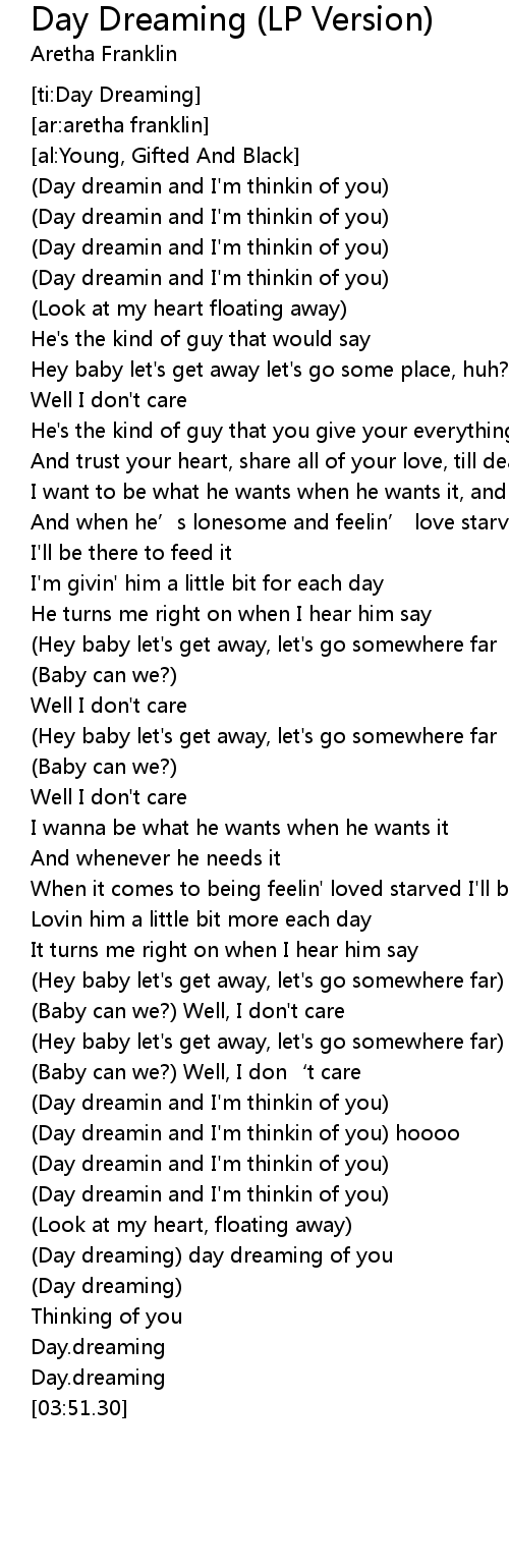 | [02:46.56] | (Day dreamin and I'm thinkin of you) |