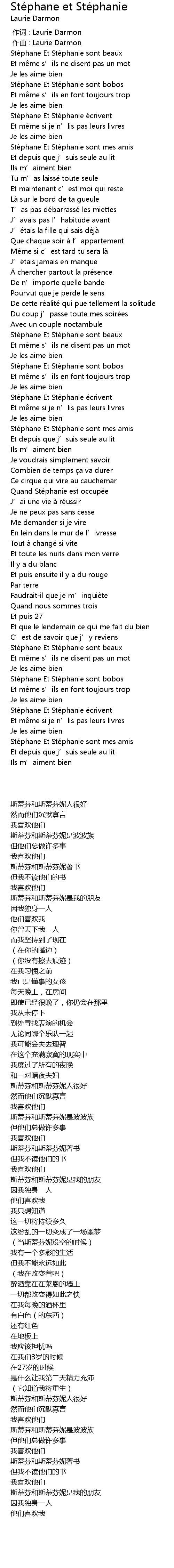 | [00:43.40] | Stéphane Et Stéphanie écrivent |