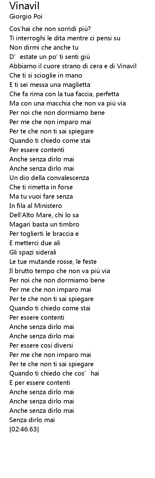 | [02:08.69] | Quando ti chiedo come stai |