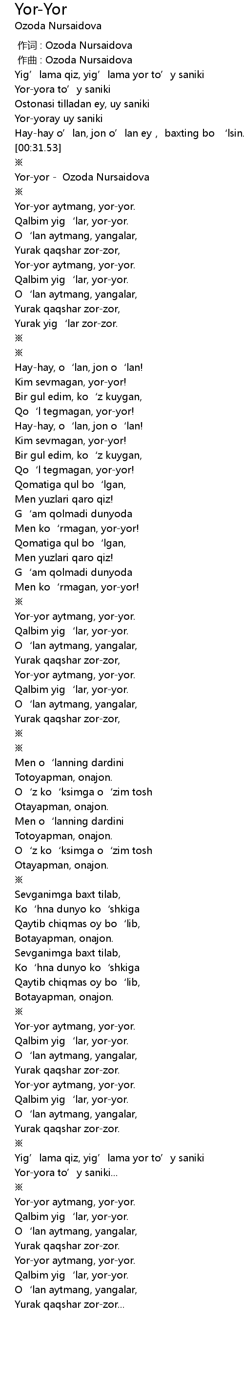 | [00:36.71] | Yor-yor - Ozoda Nursaidova |