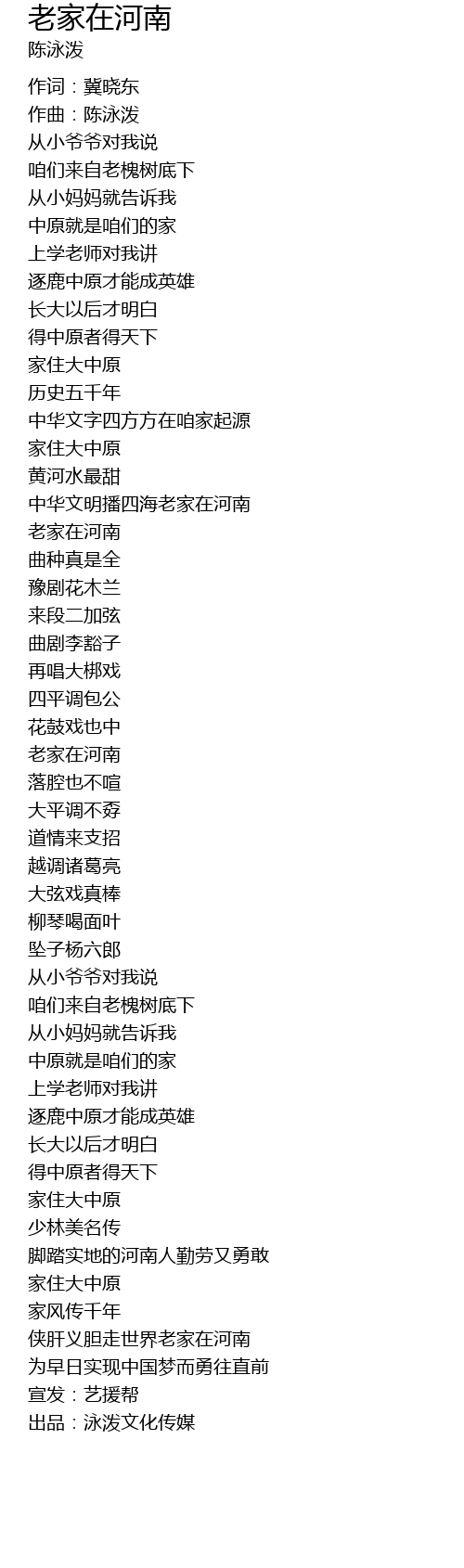| [01:15.11] | 中华文明播四海老家在河南 |