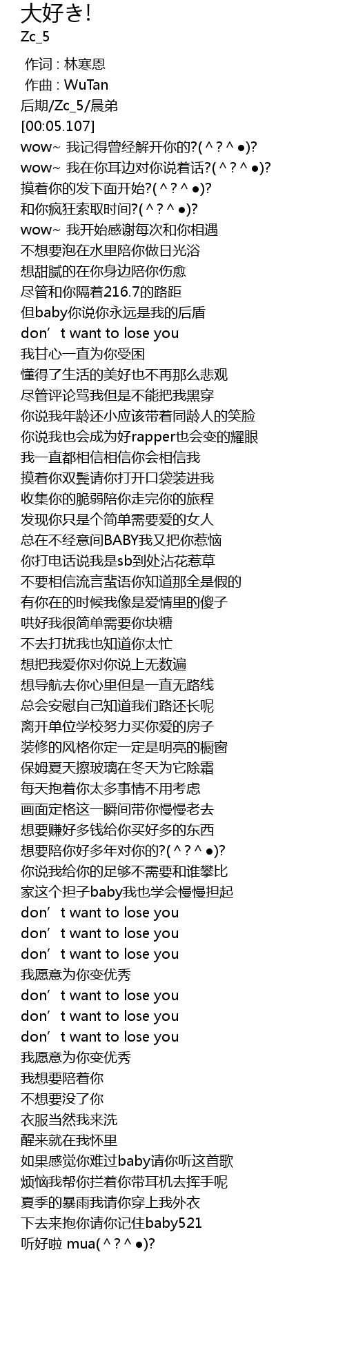 | [01:48.620] | 想要陪你好多年对你的?(^?^●)? |