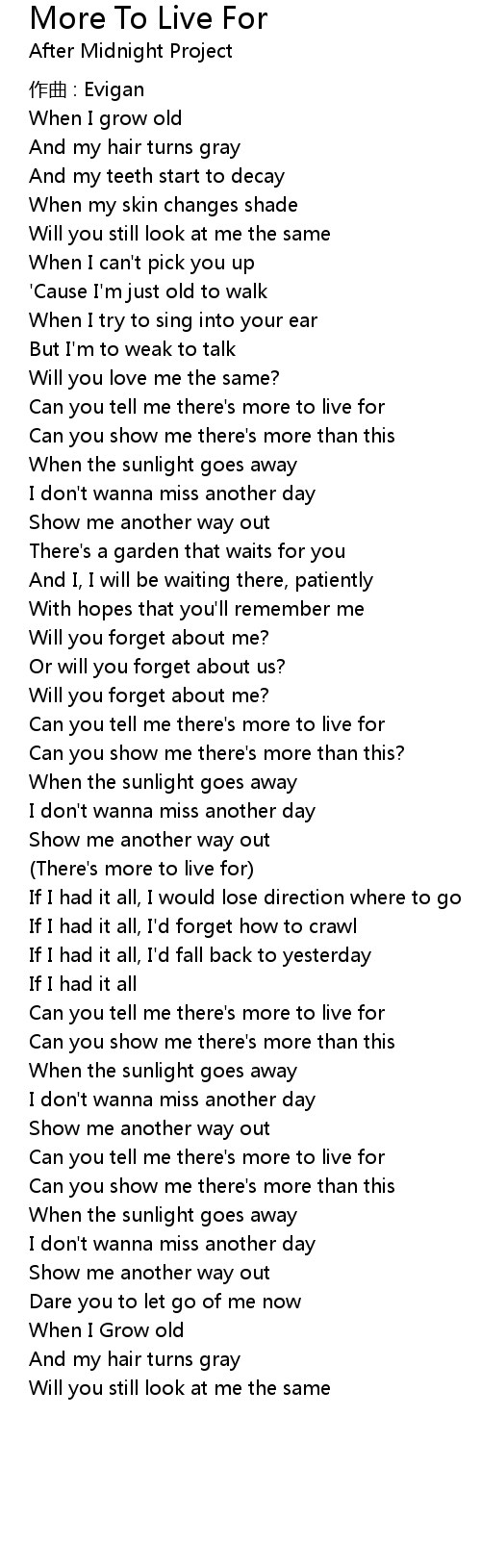 | Song | More To Live For |