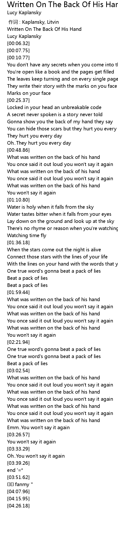 | [01:45.20] | With the lines on your hand with the words that you write |