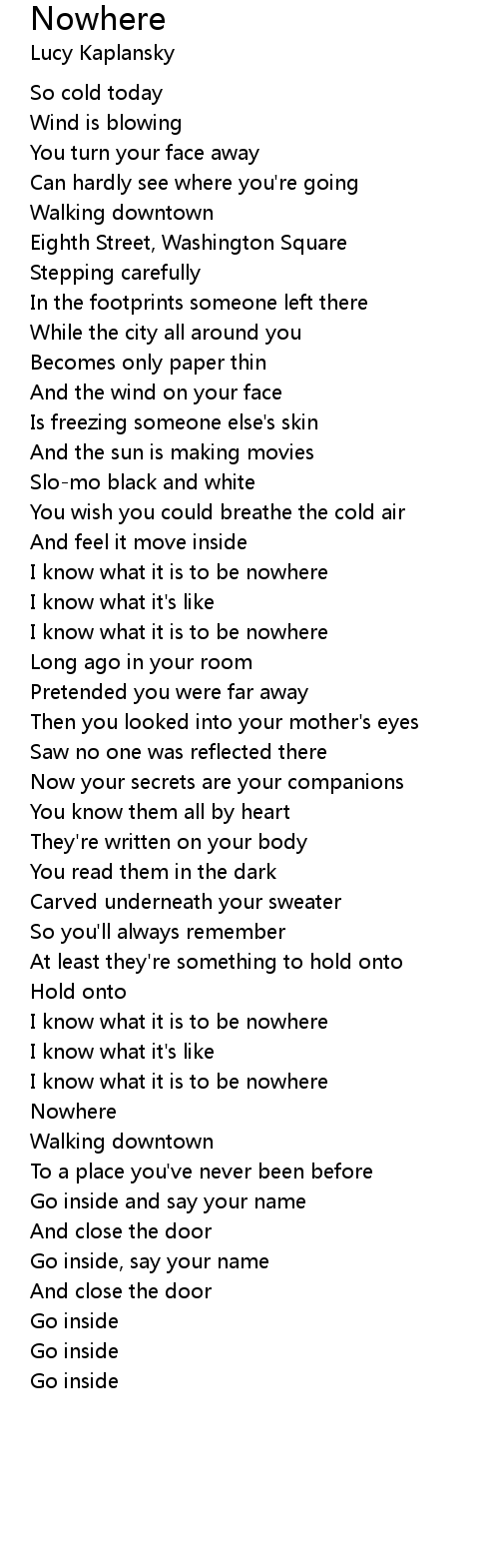 I know what it is to be nowhere |