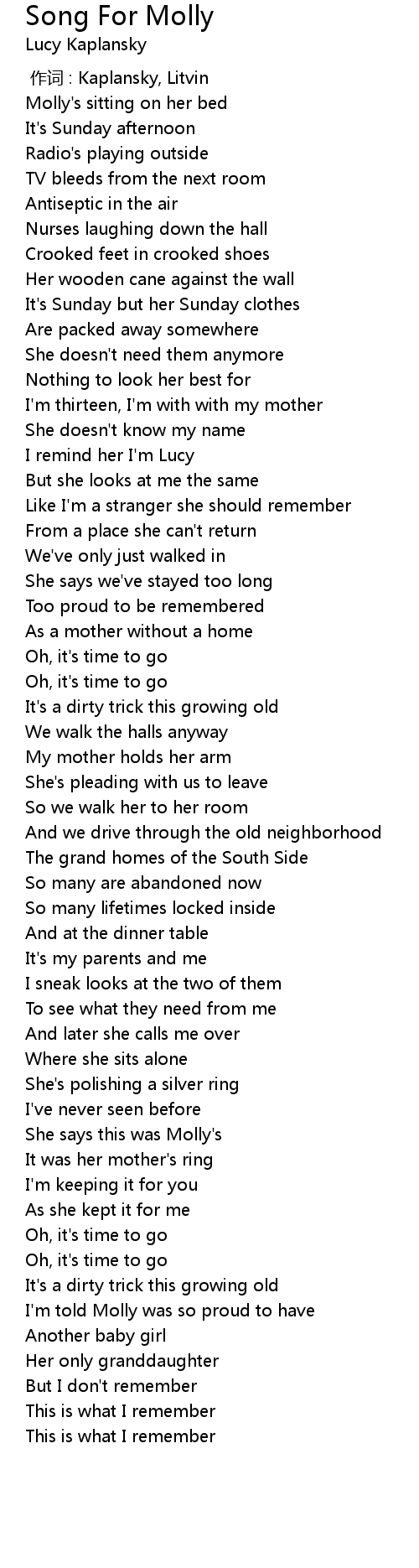 | [00:36.14] | It's Sunday but her Sunday clothes |