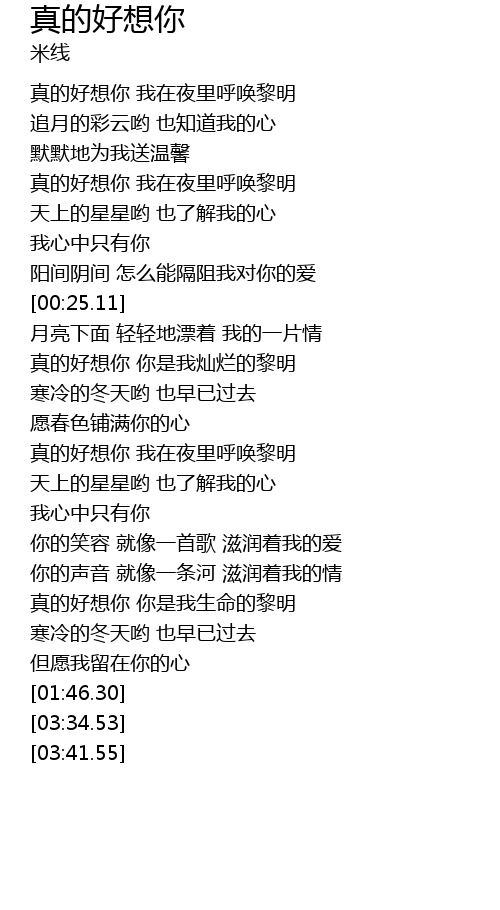 | [01:38.31] | 真的好想你 你是我灿烂的黎明 |