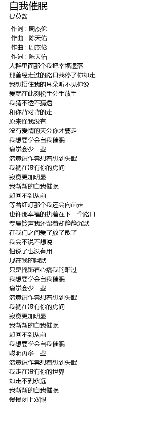 | [01:34.220] | wǒ jiàn jiàn de zì wǒ cuī mián |
