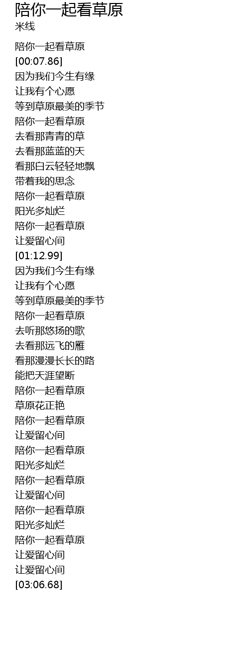 | [01:43.88] | péi nǐ yì qǐ kàn cǎo yuán |