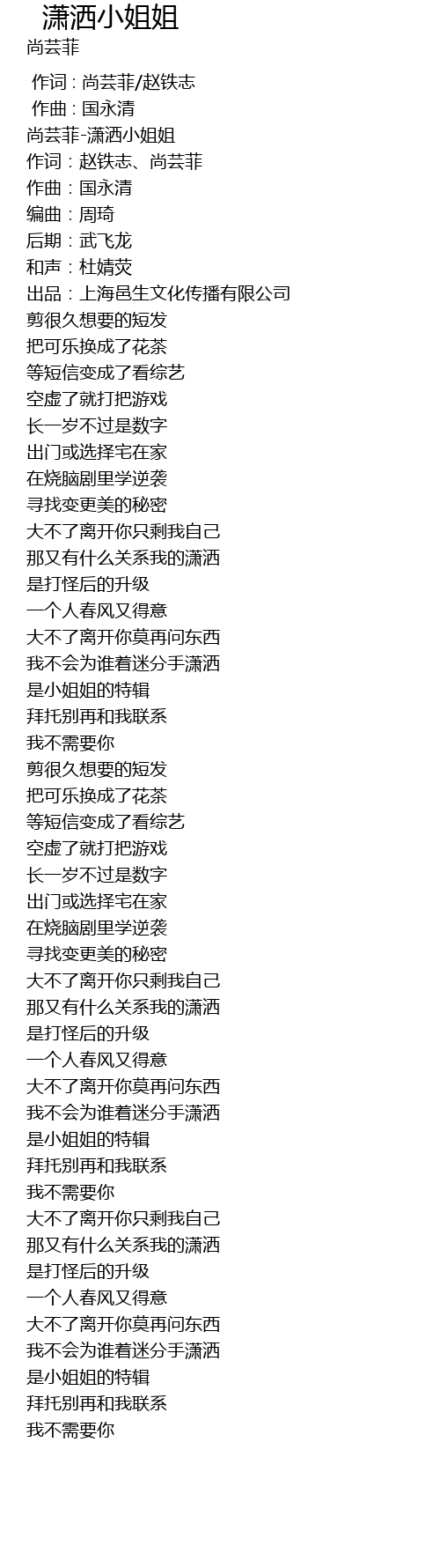 | [00:00.495] | 尚芸菲-潇洒小姐姐 |