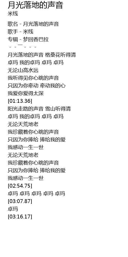 | [00:32.32] | 月光落地的声音 格桑花听得清 |